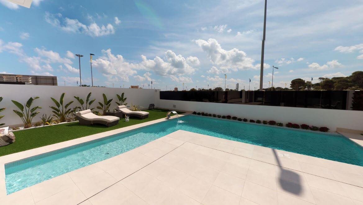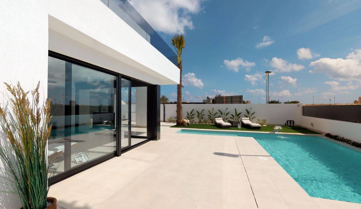 Dit project betreft een grote vrijstaande villa in San Pedro del Pinatar, gelegen op slechts ca. 800 meter van de zee en de boulevard van de Mar Menor. De woning combineert moderne architectuur met ruime woonoppervlakte, hoge afwerking en buitenruimtes waaronder een privézwembad, terras en tuin — ideaal voor comfortabel wonen of vakantie onder de Spaanse zon.